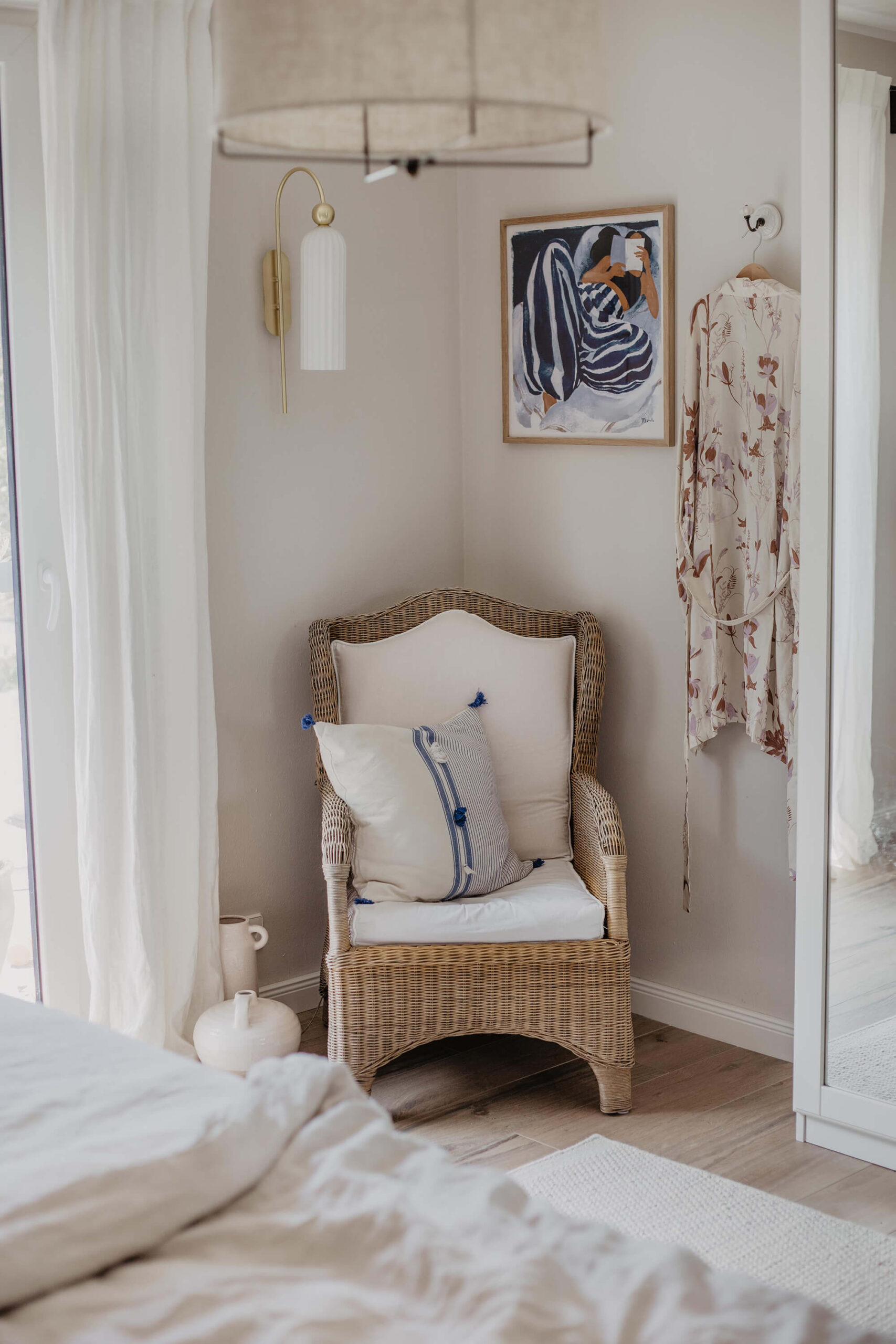korbstuhl-schlafzimmer-landhaus-stil-blau-weiss-deko